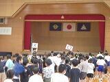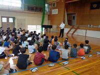 体育館では、警察の方より今日の避難訓練のよかったところや反省点についてのお話がありました。