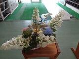 今日も、小原流師範、横山佳代子先生がお花を生けに来てくださいました。毎回、ボランティアで来てくださっています。