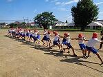 運動会の「オープニング」で披露する「子ども臼太鼓踊り」と団技「つなひき」の練習です。