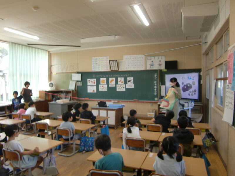 味覚には「苦味」「甘味」「塩味」「酸味」「うま味」の「五味」があることを教えてくださいました。そして、「うま味」は日本でできた「五味」であることも教えてくださいました。子どもたちの反応も良く、興味をもって話を聞いていました。