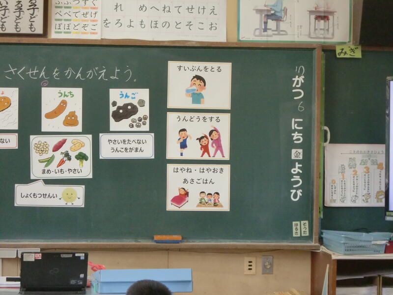 胃腸の調子を整えるために、「水分をとる」「運動をする」「早寝・早起き・朝ごはん」の3つが大事であることを勉強しました。