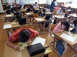 子どもたちは、保護者の方々だけでなく地域の方も参観に来られるため、気合いバッチリです。タブレットを活用したり、友達と話し合ったりしながらみんな一生懸命に取り組んでいました。