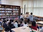 図書館では、館長さんに「本の貸出冊数はどのくらいあるんですか?」等の質問をしたり、図書館の活動などの説明を聞いたりしました。