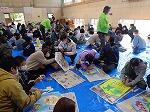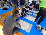 1、2時間目は1~3年生が「エイ凧」を、3、4時間目は4~6年生が「六角凧」を作りました。