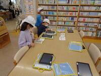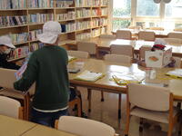そして、最後に図書館での読書活動です。子どもたちは、いろいろな本の中から読みたい本を探してきて、読書を楽しみました。
