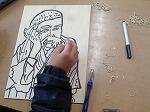 子どもたちには、それぞれ尊敬する人物がいるようで、様々な偉人を版画で表現しようと頑張っています!