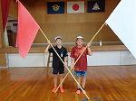その後は、団長同士がストップウオッチ対決をしました。ストップウォッチを見ないで、10秒だと思うところで止め、10秒により近い方の勝ち、という勝負です。勝った方から、振ったら中身の色が「赤」か「白」に変わる魔法のペットボトルを選びます。