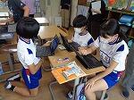 本時は、豊臣秀吉が天下統一を果たすまでの政策等をまとめる、という学習内容でした。子どもたちは、資料をもとに個人やグループで調べていきます。そして、調べた内容をまとめ、全員で共有して、全体のまとめとしました。それぞれが当たり前のようにタブレットを駆使しながら、調べ、そして、まとめる姿に感心しました。さすが6年生です。