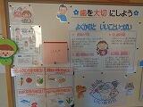 子どもたちに、「歯を大切にすること」をしっかりアピールするために、クイズ形式を取り入れるなど工夫しています。また、「咀嚼」の大切さも掲示しています。