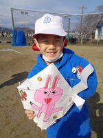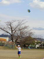 先週の金曜日、雨のため中止になった「たこあげ大会」を、今日は1年生が実施しました。
