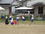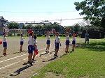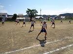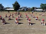 運動会の「オープニング」で披露する「子ども臼太鼓踊り」と団技「つなひき」の練習です。