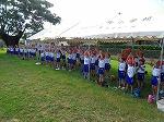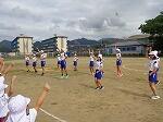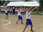 2校時目は「全校体育」でした。今日は、開閉会式の並び方や優勝旗授与、応援等でした。