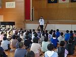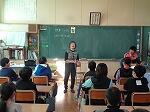 子どもたちも、西都市の歴史上の人物のお話に真剣に耳を傾けていました。