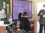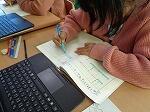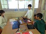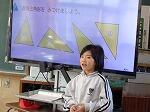2年生が図形の学習をしました。今日は、直角三角形の学習をしました。教科書にある三角形が直角三角形かどうかを考えます。子どもたちは、三角定規を使い、図形に直接当てて、直角かどうかを調べていました。見て判断するだけではなく、実際に確かめることができ、自信をもって発表していました。