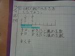 3年生が分数の学習をしています。今日は、8分の3と8分の5を比較する学習をしていました。ノートに線分図を書き、視覚的に大きさを比較できるようにしてしていました。「分母が同じときには、分子大きい方が大きくなる」ことを学んでいました。