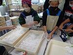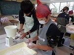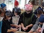 ついたもちを切って丸める作業も行いました。保護者に教えてもらいながら楽しそうに作業していました。