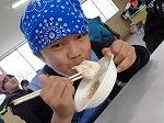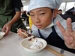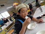 そして、最後にみんなでいただきました。外では、保護者とJA青年部のみなさんがもちを焼いてくださり、さらにおいしくなりました。
