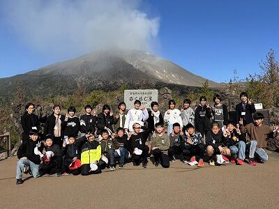 学校を出発して、まずは、桜島の有村展望所についたようです。みんな元気に記念写真を撮りました。