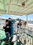 6年生は、桜島港からフェリーに乗り、鹿児島市に移動しました。