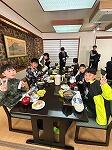 その後、鹿児島市内のホテル吹上荘で昼食です。修学旅行での初めての食事です。みんな楽しそうです。