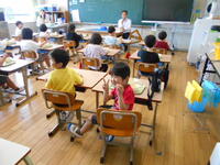 始業式の後は、今年度からチーム担任制を始めたので、チームごとに集まってオリエンテーションを行いました。1・2年生が「スマイルチーム」、3~6年生が「チャレンジチーム」です。それぞれのチームで、チームの約束事などいろいろなことについて確認をしました。