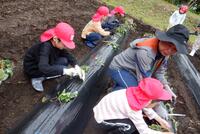 保護者から植え方をならい、みんなで植えました。水やりもできました。