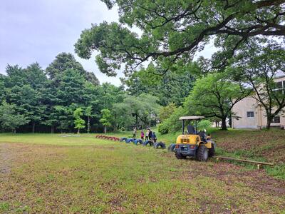 大型トラックやブルドーザーがあるのは本校ならではであり、作業効率もあがります。ありがたいばかりです。子どもたちも大変よくがんばりました。刈った草をあつめ、一輪車やリアカーに乗せる作業を一所懸命やってくれました。