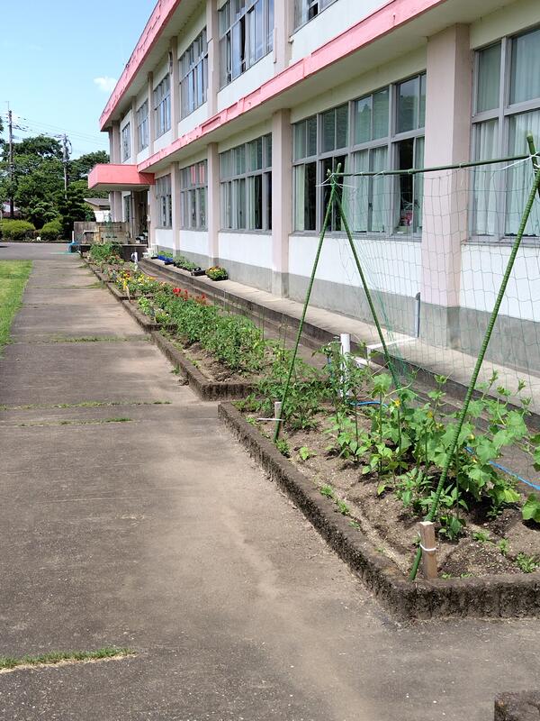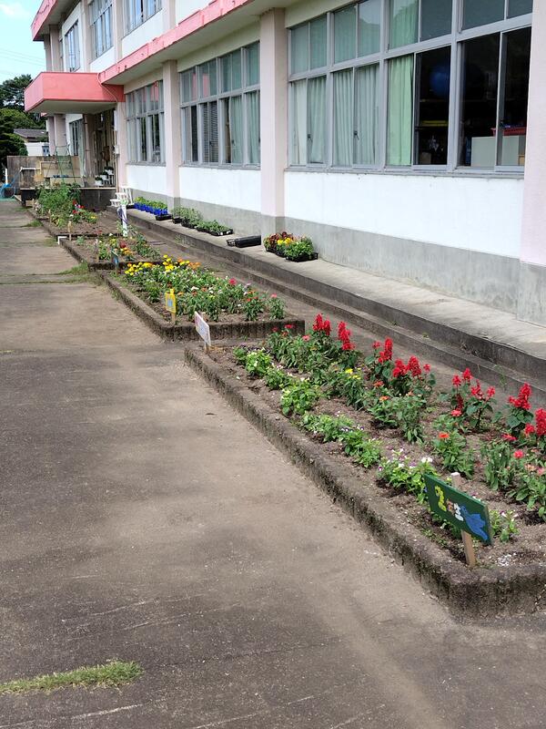 本年度も、校舎前の花壇に子どもたちは花を植えてくれました。各学年、思い思いに苗を植えました。生活科単元の花壇には、きゅうり、ゴーヤ、ミニトマトなど、観察をしながらも収穫が待ち遠しいです。