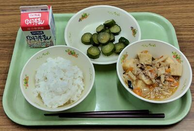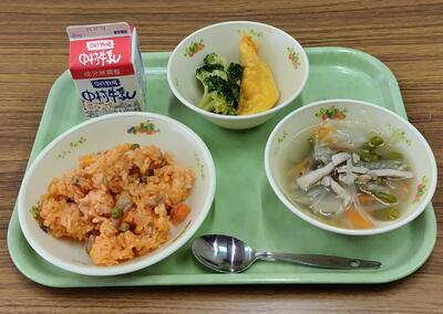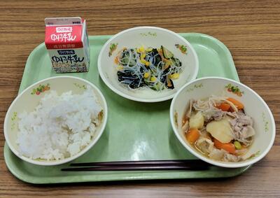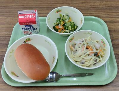 その後の給食では、いただいたCDを聞きながら、美味しい給食をいただきました。