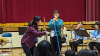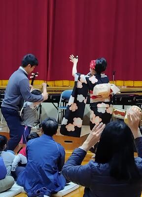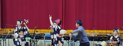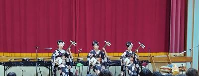 令和5年12月7日(木)3、4校時は、「学校と地域を結ぶコンサート」村上三絃道様の演奏を聞きました。