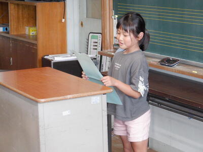 2学期にがんばりたいことは国語です。どうしてか分からないけど、漢字をおぼえたと思ったのに、すぐわすれてしまします。漢字が苦手だけど、それでも少しは分かるから、もっとおぼえたいです。それから理科です。理科は楽しいけど、いつもみんなが勝手な意見をどんどん言っています。教頭先生は、にこにこしているけれど、こまっているかもしれません。だから、だいじだなあと思う意見はどんどん言って、かんけいないことはいわないようにしたいです。