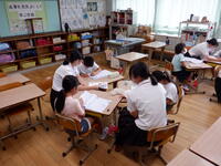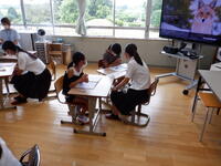 45分×2コマ、子ども達も集中して、そして、分からないことをどしどし訊いていました。子ども達・高校生ともに、良い表情で学習していました。