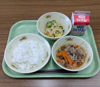 白ご飯、牛乳、牛丼、冷やし中華サラダ