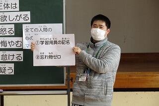 その後、学習部の先生が「2月の目標」についてお話をされ、最後にみんなで校歌を歌いました。コロナ禍の中ですが、みんなで元気を出して2月を乗り切りたいです。