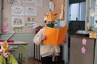 2時間目に1・2年生の教室に来てくださいと、担任の先生に言われていたので、のぞいてみると、2月12日に行われる新入生入学説明会で、新入生に学校生活のことを紹介する予行練習をしていました。一人一人が役割分担をして台詞を言ったり、劇や合奏をしたりしてみんなで楽しく迎えようという意欲にあふれていました。新入生もきっと大喜びだと思います。頑張れ1・2年生!
