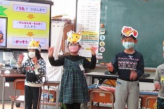 2年生から6年生が、新入生を迎えるために「歓迎の言葉」を送ったり、歌を歌ったりしてくれました。