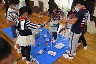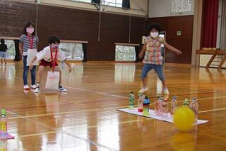 1・2年生がずっと計画していた交流会です。この日のために様々なゲームコーナーを考え、道具等を準備してきました。魚釣り、ボウリング等とても工夫されたゲームコーナーがあり、保育園の子ども達もとても楽しそうに遊んでいました。
