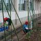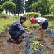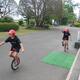 苗に水やりをしたり、一輪車に乗ったり、思い思いに外で過ごしています。