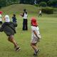 1年生が受けやすいようにやさしくボールを投げる2年生の姿に感激しました