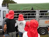 ・・・仔牛の乗ったトラックが見え、思わず校長室を飛び出しました