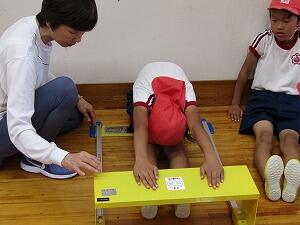 外はあいにくの雨ですが、今日から本年度の体力テストが始まりました。初日の今日は、5・6年生が長座体前屈や立ち幅跳び等の屋内の種目にチャレンジしていました。