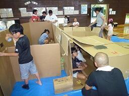 茶臼原小学校のお父さん方と育成会の方々が中心となり、7月2日(土)3日(日)に段ボールキャンプがありました。自分たちの寝床を各地区に分かれて、体育館に段ボールで作成しました。防災教育も兼ねていたので、夕食は、レトルトカレーをご飯にかけて感謝しながらいただきました。スイカ割りやナイトウォークもあり、子どもたちの心に大切な夏の思い出として残りました。