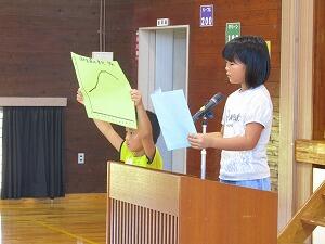 2人の児童が代表で「2学期の目標」を発表してくれました。堂々とした素晴らしい発表でした。私は、運動会等の行事を控え慌ただしくなる2学期だけれども、「はきものをそろえ、心をそろえて、心穏やかに生活しよう」という話をしました。その後、夏休み中に開催された「西都市小学校水泳大会」で入賞した児童の表彰を行いました。