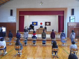 6年生を始め、全校児童がしっかり「一同起立、気をつけ、礼、着席」の動きができていました。