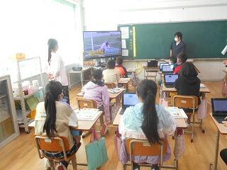 5年生は、外国語の授業がありました。担任がT1、ALTの先生がT2で授業を進めていきます。