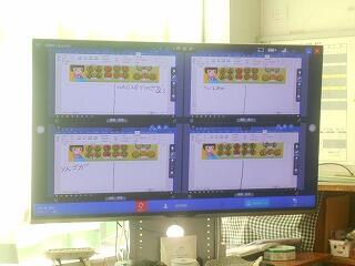 大型テレビから、子ども達のタブレットに問題文を配信します。