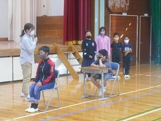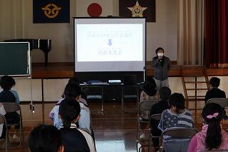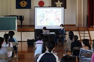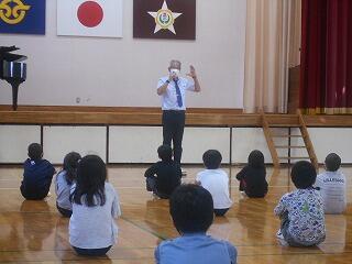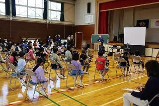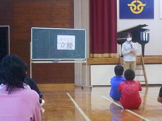 また、保健室の福本先生からは11月の目標「姿勢を正しくしよう」についてお話がありました。姿勢が悪くなると、背骨の成長や内臓の正常な働きに大きな影響を及ぼすそうです。子ども達は、「立腰」の姿勢でしっかりと目と耳と心でお話を聴いていました。