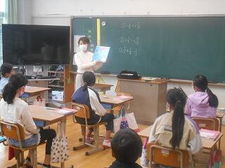 今日の1校時目は、3年・4年の読み聞かせでした。毎回、ボランティアで読み聞かせをしてくださる野村先生が、楽しい本を選んで読んでくださいます。