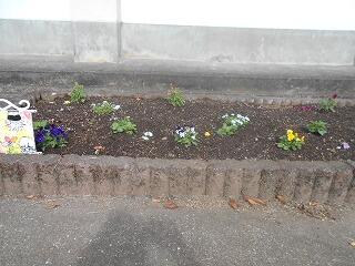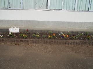今日は、全校で花植作業を行いました。この花は卒業式に向けての花です。
