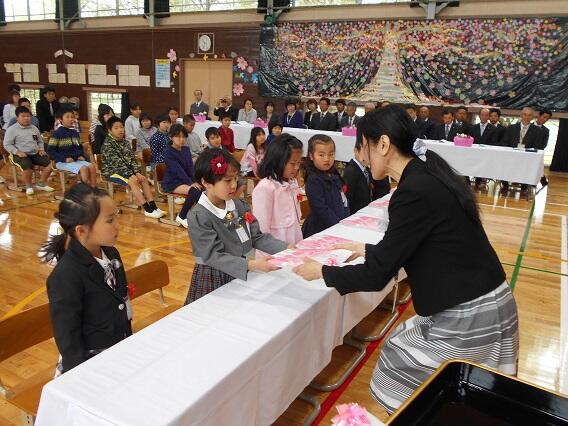 平成28年度の入学式が、4月11日(月)にありました。前日まで雨でしたが、その日は入学を喜ぶかのように晴れました。男子2名、女子4名、計6名のピカピカの新1年生です。1年生が、早く学校に慣れるように、先生方も、2年から6年までのお兄さんやお姉さんたちも一生懸命お世話をします。どうぞ、早く慣れて、楽しい学校生活を送ってくださいね。